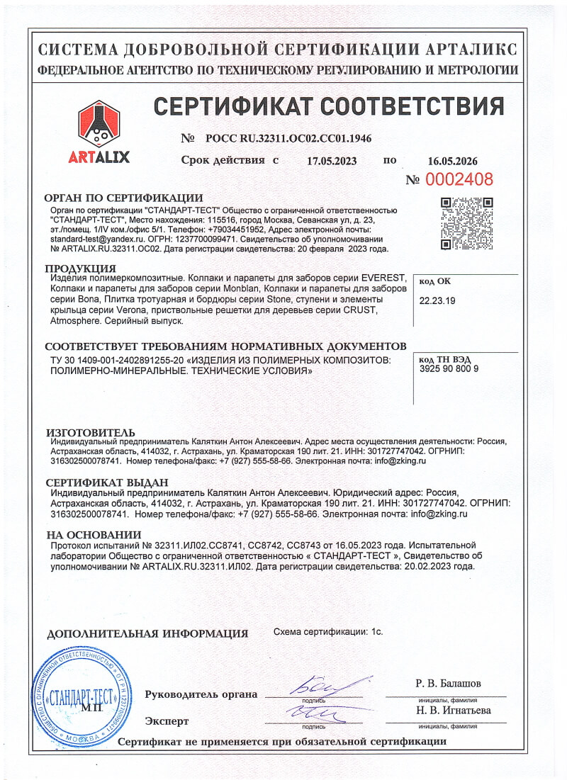 Сертификаты соответствия ZKING для Коврова